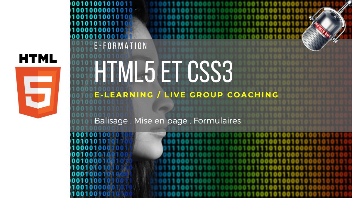 Langages HTML5 et CSS3Dans cette e-formation, vous allez apprendre à créer des sites web modernes en utilisant les langages HTML5 et CSS3 : installations, maîtriser le balisage, créer des styles CSS, créer des formulaires professionnels, ajouter des éléments multimédia et publier votre site. Pré-requis : savoir utiliser un ordinateur, savoir utiliser un navigateur.